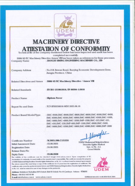 중국 Jiangsu Siming Engineering Machinery Co., Ltd. 인증서