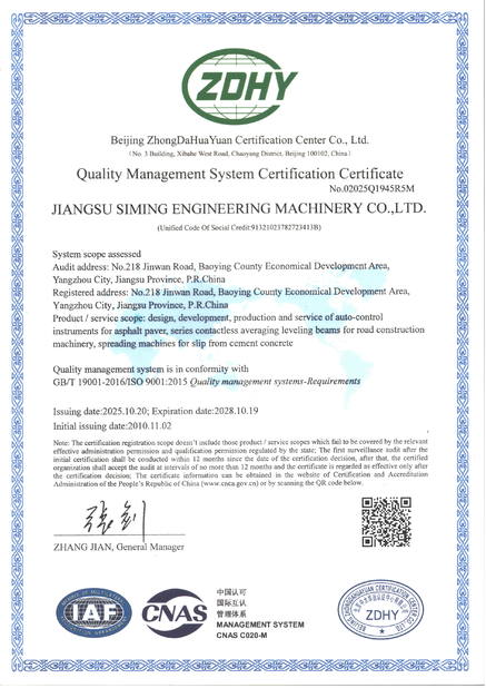 Jiangsu Siming Engineering Machinery Co., Ltd. 품질 관리